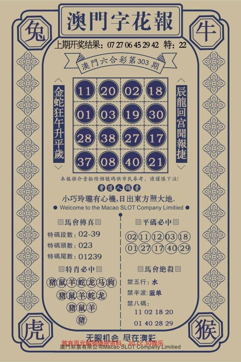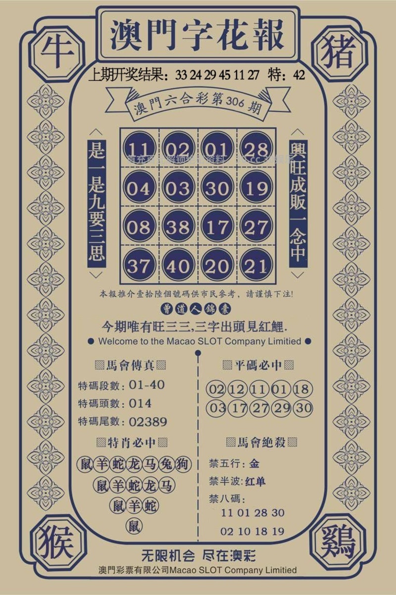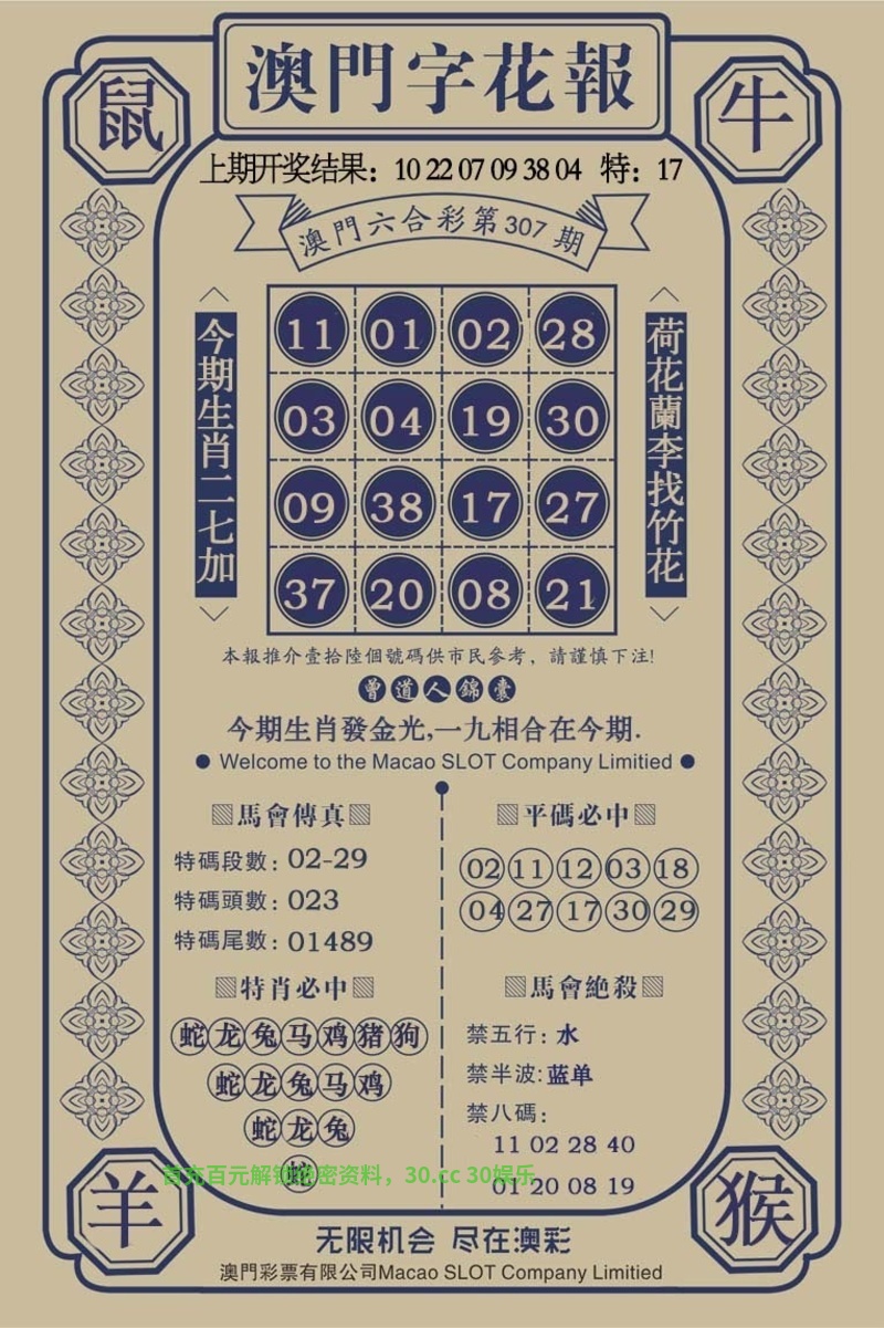 308期澳字花报【今期生肖三三開,初生牛兒不怕虎】 解:今期生肖三三開,初生牛兒不怕虎解猴蛇马鸡羊兔 综合取肖:猴蛇马鸡羊兔  |